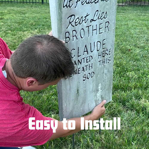 - Our tombstones come with everything you need to be up and ready in minutes. Includes rebar for each tombstone and a PVC marker for easy installation!